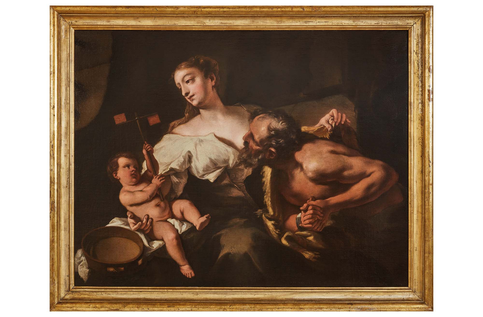 Appartenente al vivace panorama veneziano del Settecento, Nicola Grassi si afferma come il più eminente tra i pittori carnici, attivo nella città di San Marco dalla giovinezza sino agli ultimi anni della sua vita. Contrariamente a quanto sostenuto per lungo tempo, la sua formazione si svolse non in ambito friulano –più periferico e per certi versi ancora attardato – ma nel cuore pulsante della cultura figurativa veneziana, con uno sguardo costantemente rivolto alle tendenze più aggiornate del tempo. Determinante fu per il pittore l’insegnamento di Nicolò Cassana, maestro raffinato e incline al naturalismo luminoso, che lasciò impronte profonde nella produzione di Grassi: dai tipi fisionomici - in particolare femminili- alla pennellata densa e lucente, fino alla consuetudine di tornare ciclicamente su temi già trattati, rielaborandoli con accenti nuovi nel corso della carriera. Questo alunnato, già attestato da Zanetti nel 1771, è da collocarsi verosimilmente negli ultimi anni del XVII secolo. La frequentazione della bottega di Cassana offrì al giovane Grassi anche l’opportunità di accostarsi ad alcuni dei principali protagonisti della scena pittorica veneziana del tempo, tra cui Rosalba Carriera, Sebastiano Ricci, Giovanni Antonio Pellegrini. Un ambiente ricco di stimoli, in cui coesistevano – e talvolta si contaminavano – poetiche opposte: da un lato il plasticismo emotivo e tenebroso di Piazzetta e Bencovich; dall’altro la levità ariosa di Ricci, prologo ideale alle grazie delgusto rococò, poi sviluppate da artisti quali Giovanni Antonio Pellegrini, Giovan Battista Pittoni e Jacopo Amigoni. Una testimonianza significativa della fase più matura dell’opera di Grassi è rappresentata dal dipinto Carità romana, già nella collezione Lauro di Bologna e datato attorno al 1720-1722. Presentato da Vittorio Sgarbi come Le tre età nel convegno internazionale dedicato al pittore, il dipinto è stato pubblicato con il titolo Carità romana, e avvicinato per affinità cromatiche e stilistiche alla tavola con Sant’Antonio da Padova col Bambino conservata al Museo di Udine, pervia del medesimo cromatismo chiaroscurale, la nettezza dei contorni e il predominio delle tonalità brune. L’opera, letta a una prima visione come rievocazione del celebre episodio di Cimone e Pero – esempio estremo di pietas filiale tratto dalla tradizione latina – presenta tuttavia alcuni elementi iconografici inediti che arricchiscono e ampliano la lettura del soggetto. Alla sinistra della scena, un tamburello con sonagli e soprattutto una piccola girella, giocattolo tenuto dal putto, introducono un linguaggio allegorico più articolato. Quest’ultimo elemento, tipico attributo dell’Inquietudine, della Follia o dell’Infanzia, si carica di significati simbolici ulteriori, evocando l’ingenuità dell’età puerile e suggerendo una lettura dell’opera come intensa meditazione sul ciclo della vita. Il dipinto si articola secondo un calibrato equilibrio compositivo, in cui i tre personaggi sono disposti in forma circolare, evocando con raffinata sottigliezza la continuità del tempo. Sulla destra, Cimone – vecchio barbuto e ammanettato – si curva verso il bambino con un’espressione sospesa tra stupore estruggimento, quasi a voler cogliere in lui l’eco di un ricordo remoto. Al centro, la giovane Pero rappresenta la pienezza della vita: accoglie tra le braccia il figlio con un gesto di amorevole protezione e, con l’altra mano, copre le spalle nude del padre con una pelle animale, in un gesto che sublima la compassione in carità. La figura della donna, solida e armoniosa, si fa cardine della composizione, connettendo i due estremi dell’esistenza in una sintesi visiva di grande eloquenza. Ella è il presente, la forza generatrice, il fulcro dell’essere. Infine, il piccolo lattante nudo, appena emerso dall’alba dell’esistenza, gioca e guarda la madre con occhi curiosi. Il suo corpicino, delicato e candido, è illuminato simbolicamente da una luce più chiara. Sullo sfondo, appena accennata, una finestra allude alla prigione di Cimone. L’opera si configura così come allegoria del tempo umano: un dialogo silenzioso tra passato, presente e futuro, in cui gli sguardi, i gesti ele posture si rincorrono con armonia poetica. Il tempo, pur invisibile, è qui raffigurato attraverso una regia compositiva calibrata e carica di pathos. Il profilo del vecchio richiama quello del povero senza mantello nella pala di Cividale, mentre la figura centrale femminile trova affinità con le eroine profane dipinte da Grassi ad Augusta. Tali consonanze, unite a richiami stilistici riscontrabili in uno dei nudi conservati al Metropolitan Museum di New York, suggeriscono con coerenza una datazione dell’opera alla prima metà del quarto decennio del Settecento.