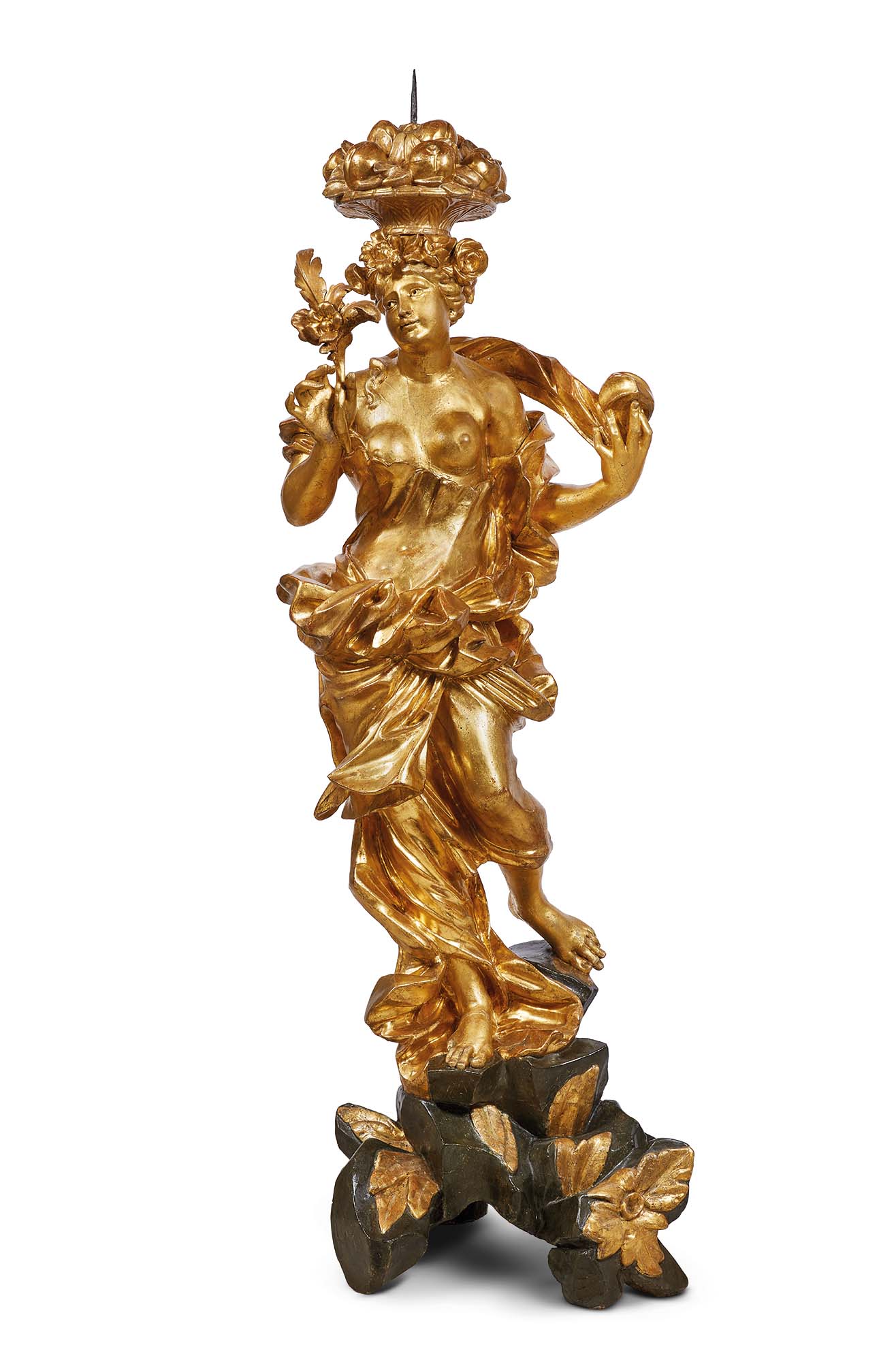 Bottega di Filippo Parodi (Genova, 1630 - 1702)L'Estate;La Primaveralegno scolpito, laccato e doratoGenova, fine del XVII secolo, cm 180h